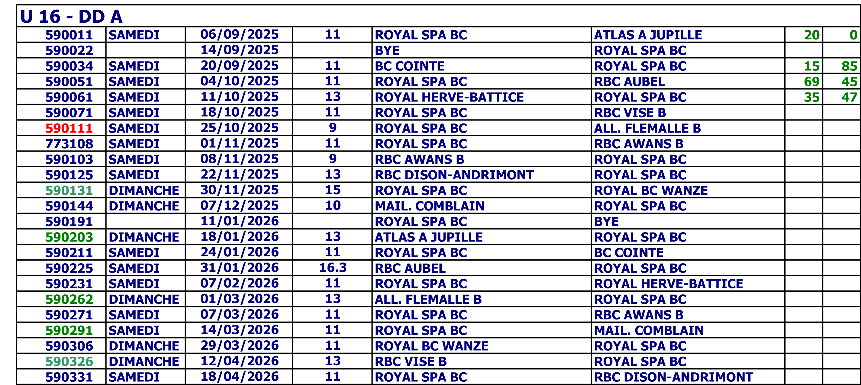 Cadets U 16 DD A