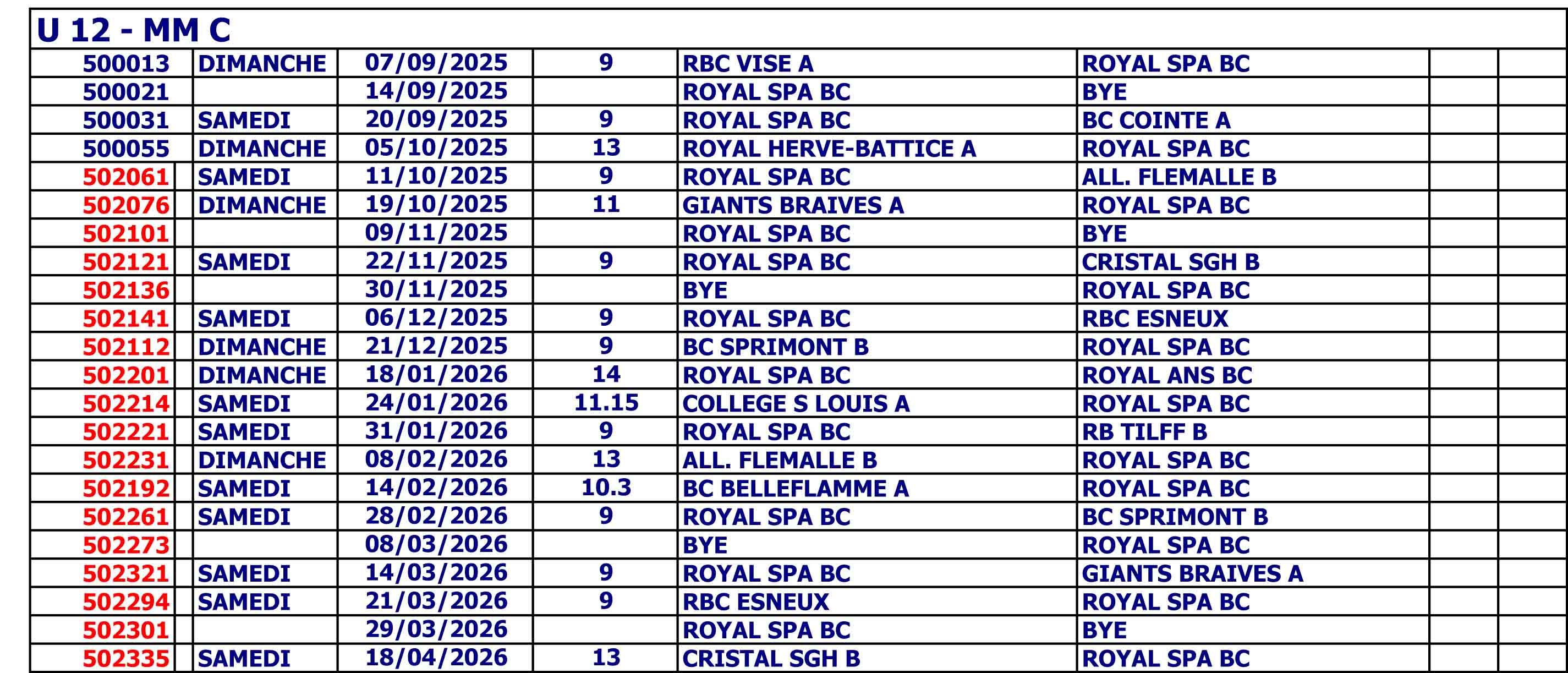 Minimes U 14 B