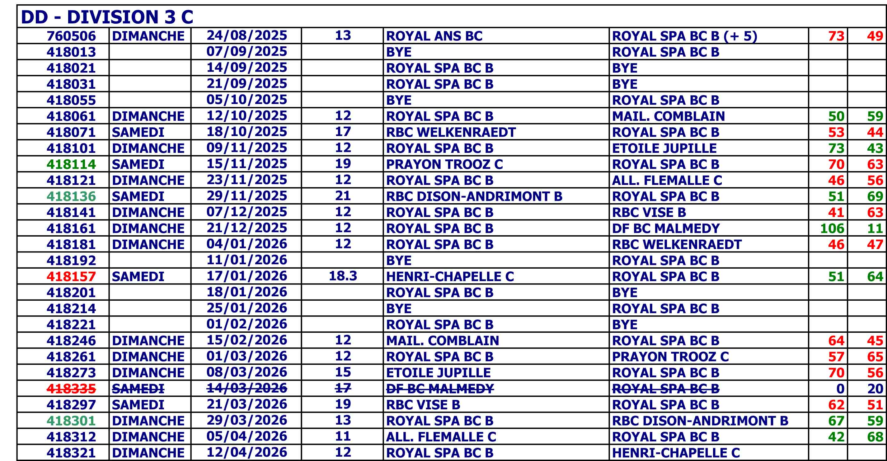 Prochaines rencontres : du 11/04/2026 au 12/04/2026