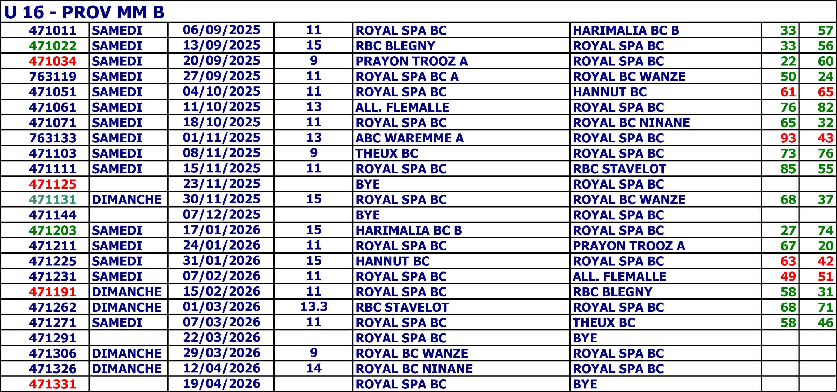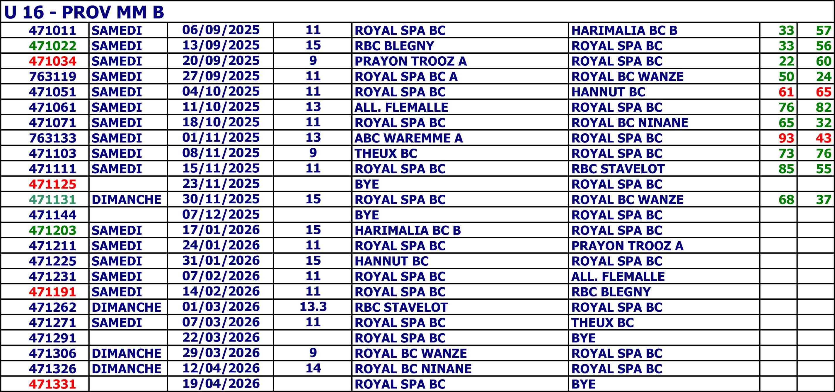 Cadets U16 PROV MM B Coach/entraineur Maxime Pluys Noam Maquinay – Mungul Michael – Horton Julien – Keutgen Nicolas – Bill Gheude – Thibaut Joiret accroupis : Arthur Delneuville – Ansay Mathis – Stanislas Hérode – Plumet Théo