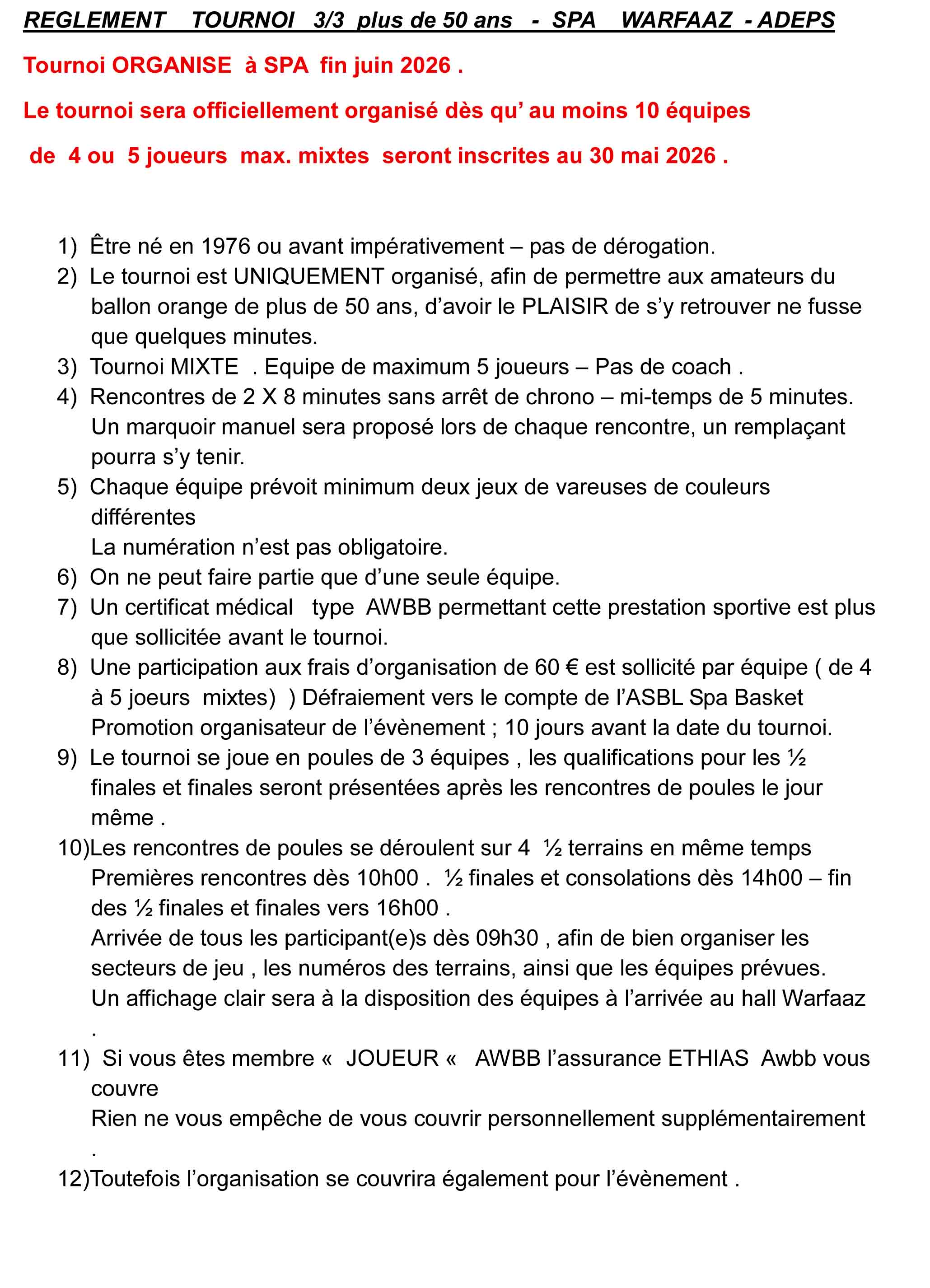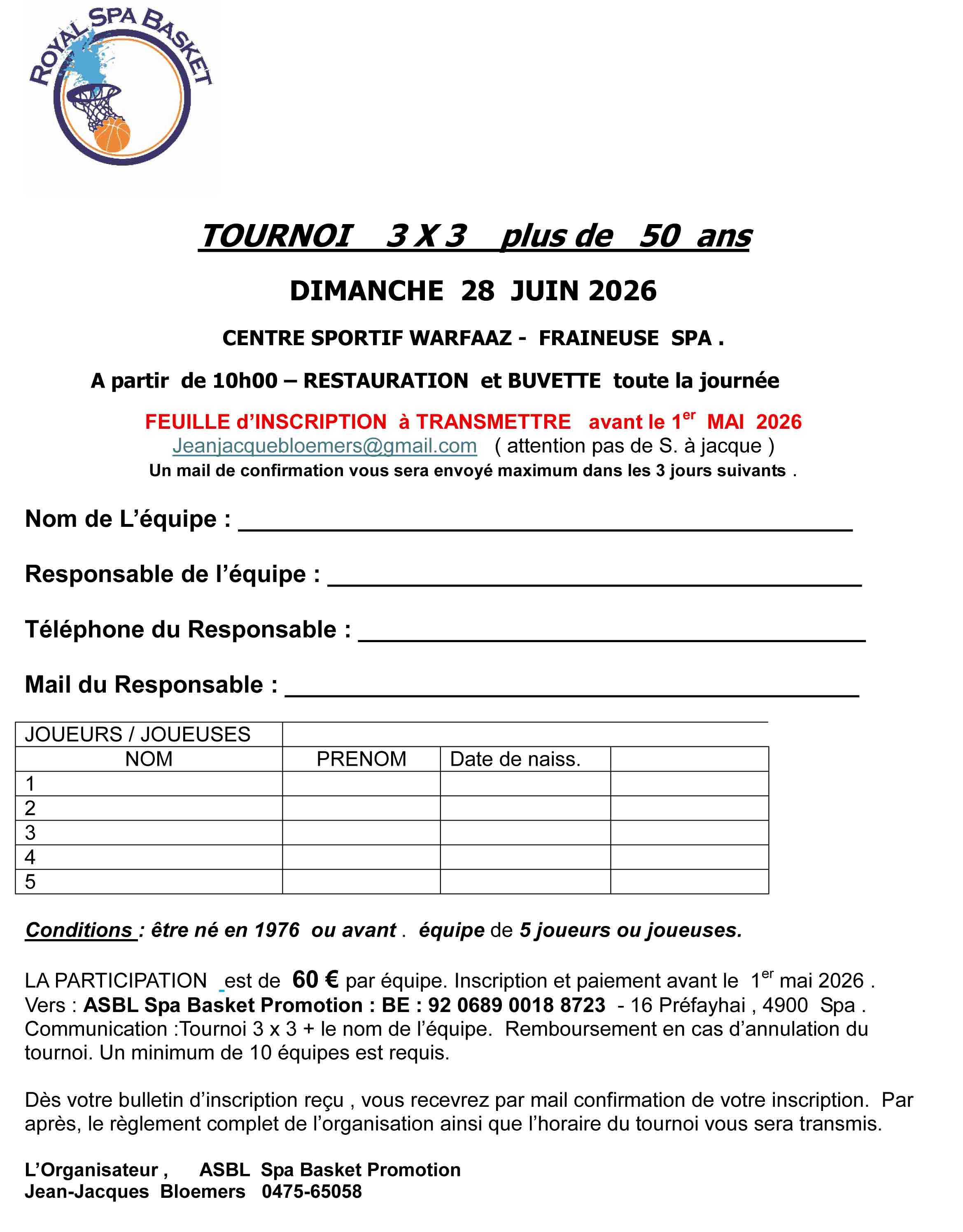 BIENVENUE AU ROYAL SPA BASKET CLUB ! CONTACT journées DRAFTS : Mr Philippe Thomas : thomasph@skynet.be