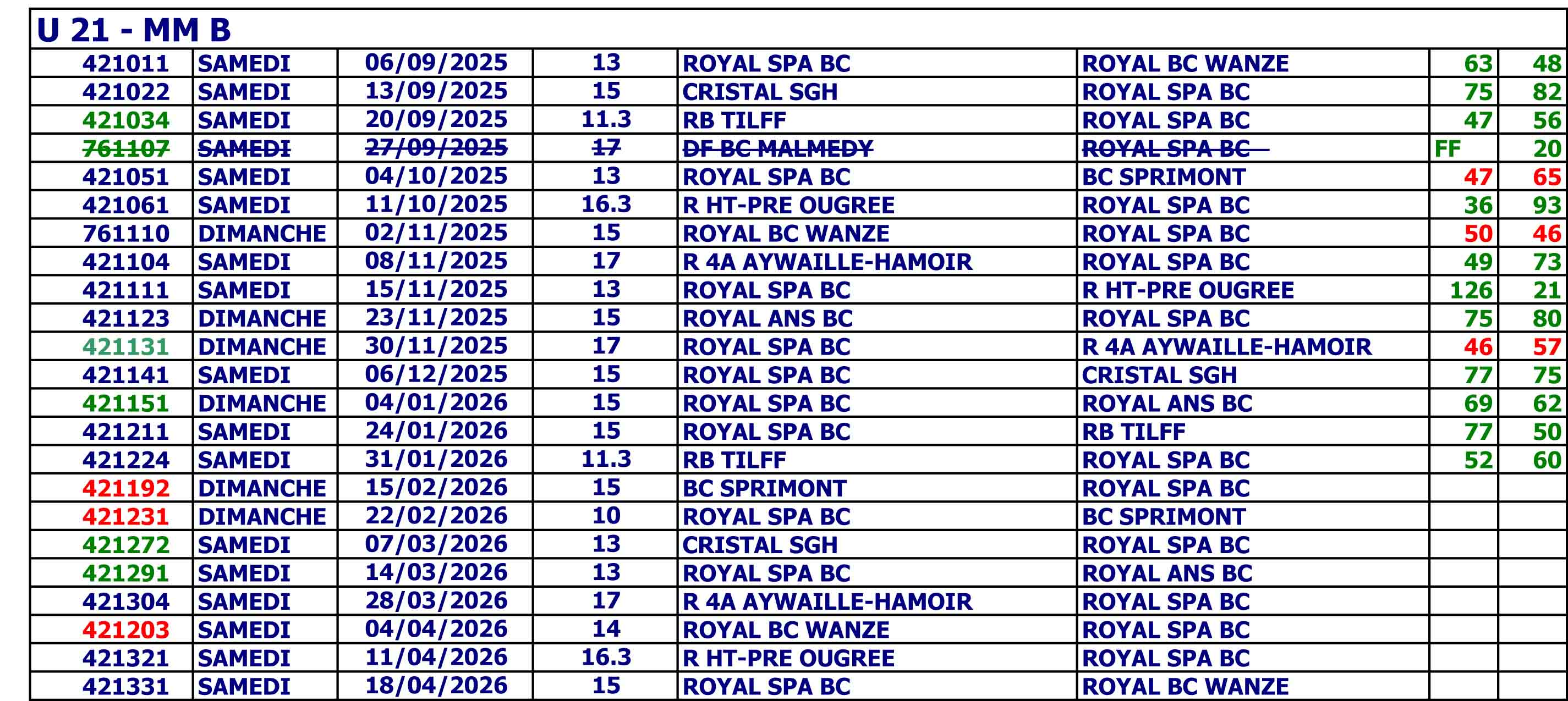 Prochaines rencontres : du 14/02/2026 au 15/02/2026