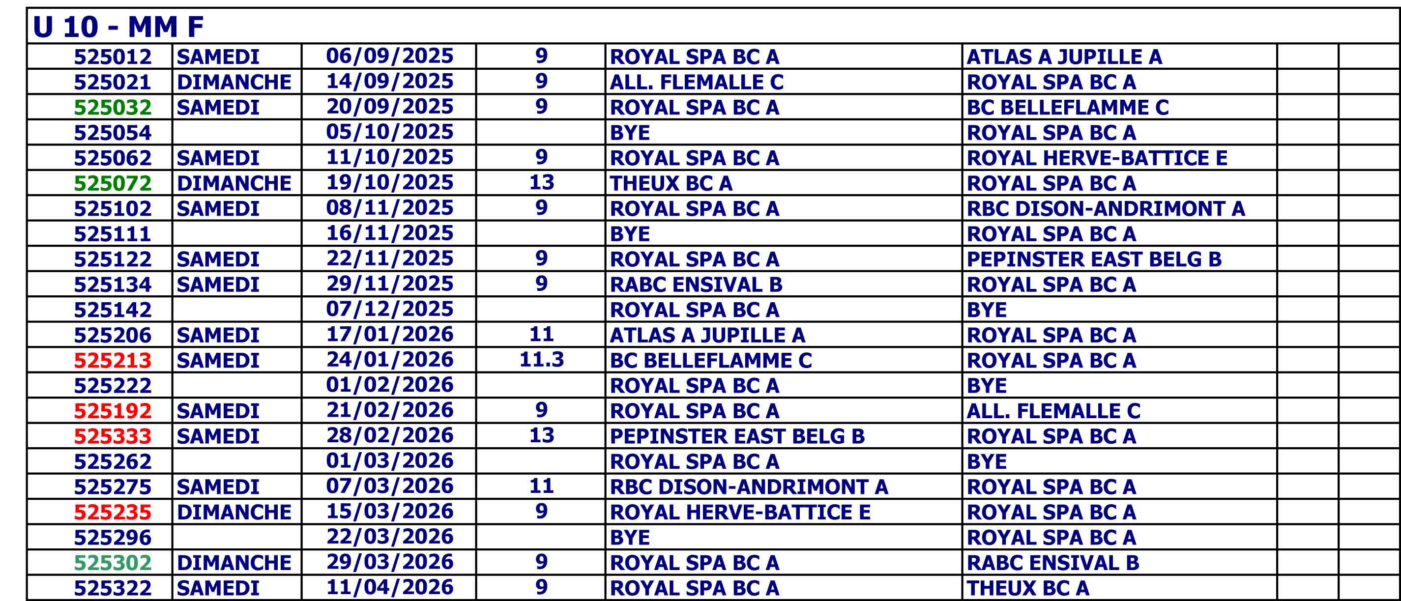 Prochaines rencontres : du 11/04/2026 au 12/04/2026